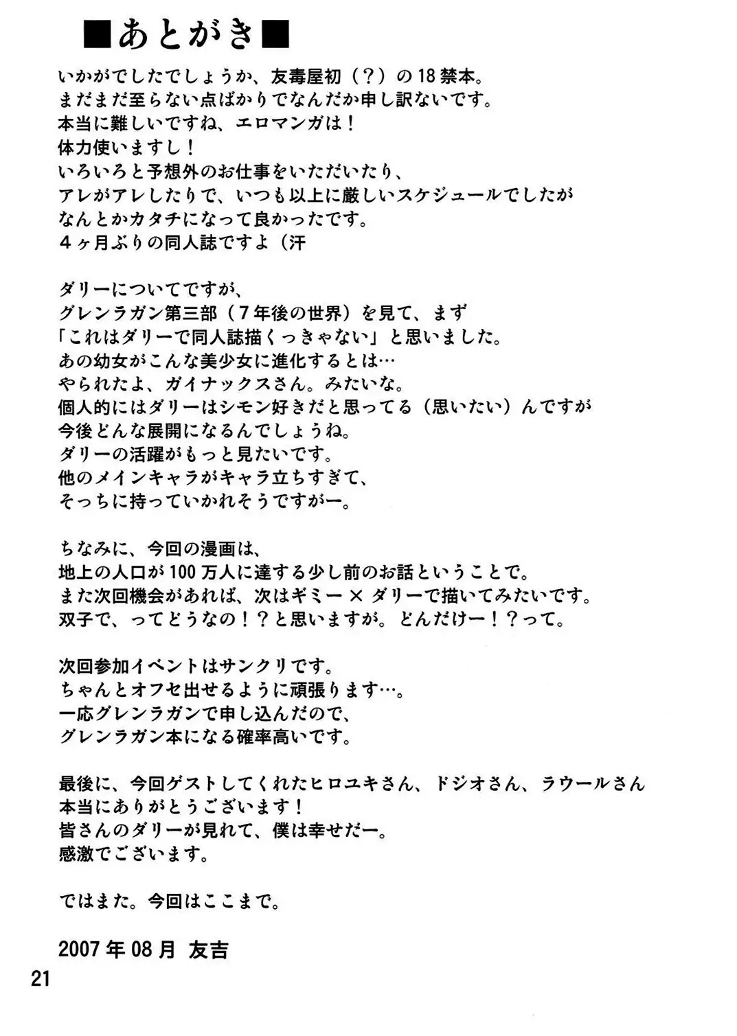 (C72) [Yudokuya (Tomokichi)] Darry no Are. | Darry Down There (Tengen Toppa Gurren Lagann) [English] [Doujins.com]