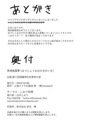 (Shuuki Reitaisai 6) [Shiori Bokujou (Shiratsuki Shiori)] Hatsujou Ookami Reimu (Touhou Project) [Chinese] [oo君誠贈平衡zk漢化]